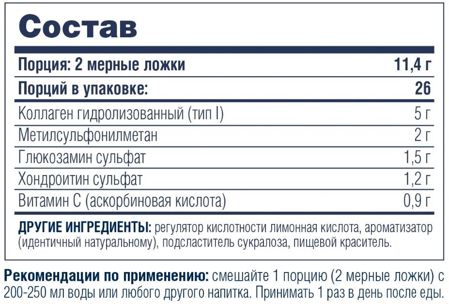 Иными словами, принимать Be First 4joints Powder рекомендуется представителям силовых видов спорта, легкоатлетам, лицам, занимающимся экстремальным спортом, единоборствами и спортивными танцами, а также всем, кто ведет активный образ жизни или работает с повышенной нагрузкой на суставы.