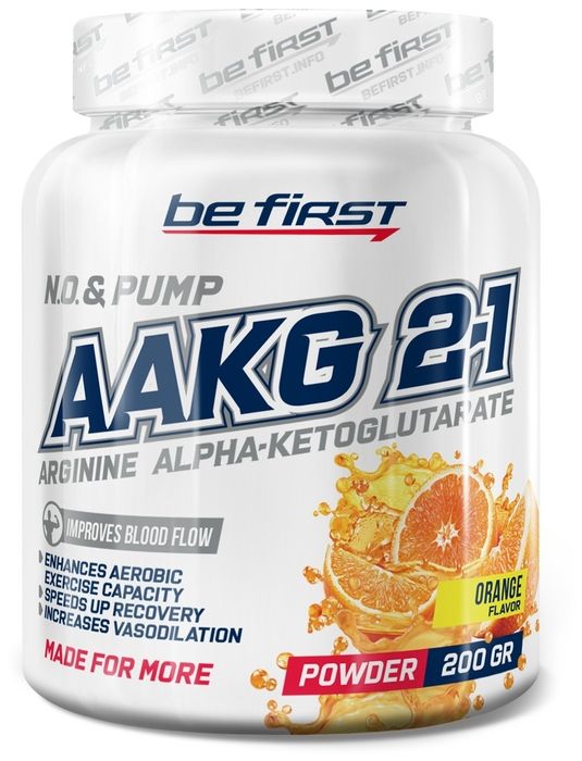 Be First AAKG 2:1 обеспечивает эффект пампинга и выступает как эффективный донатор азота.