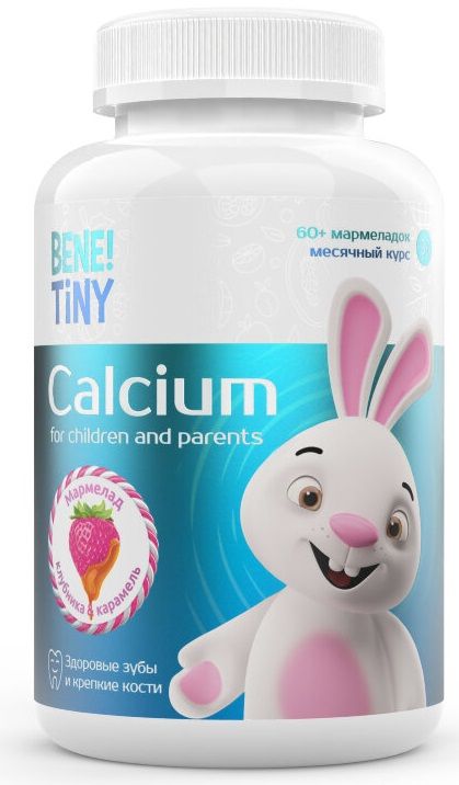 BENE! TINY Calcium Kids "клубника " - это витамины для детей и полноценная формула важнейшего минерала для ежедневной поддержки здоровья детей и взрослых . Кальций укрепляет структуру костей и зубов, а также способствует нормальной работе нервной системы и мышц, участвует в обмене веществ. Кальций является ключевым компонентом костной ткани, который отвечает за ее функционирование и регулярное обновление. Оптимальная дозировка кальция оказывает комплексную поддержку костной и мышечной систем и эффективно участвует в механизме свертывания крови и многих важных обменных процессах в организме.