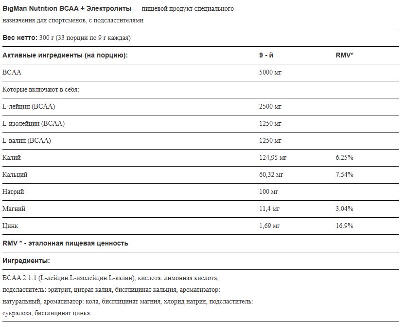 Преимущества BCAA + электролитов от BigMan Nutrition :