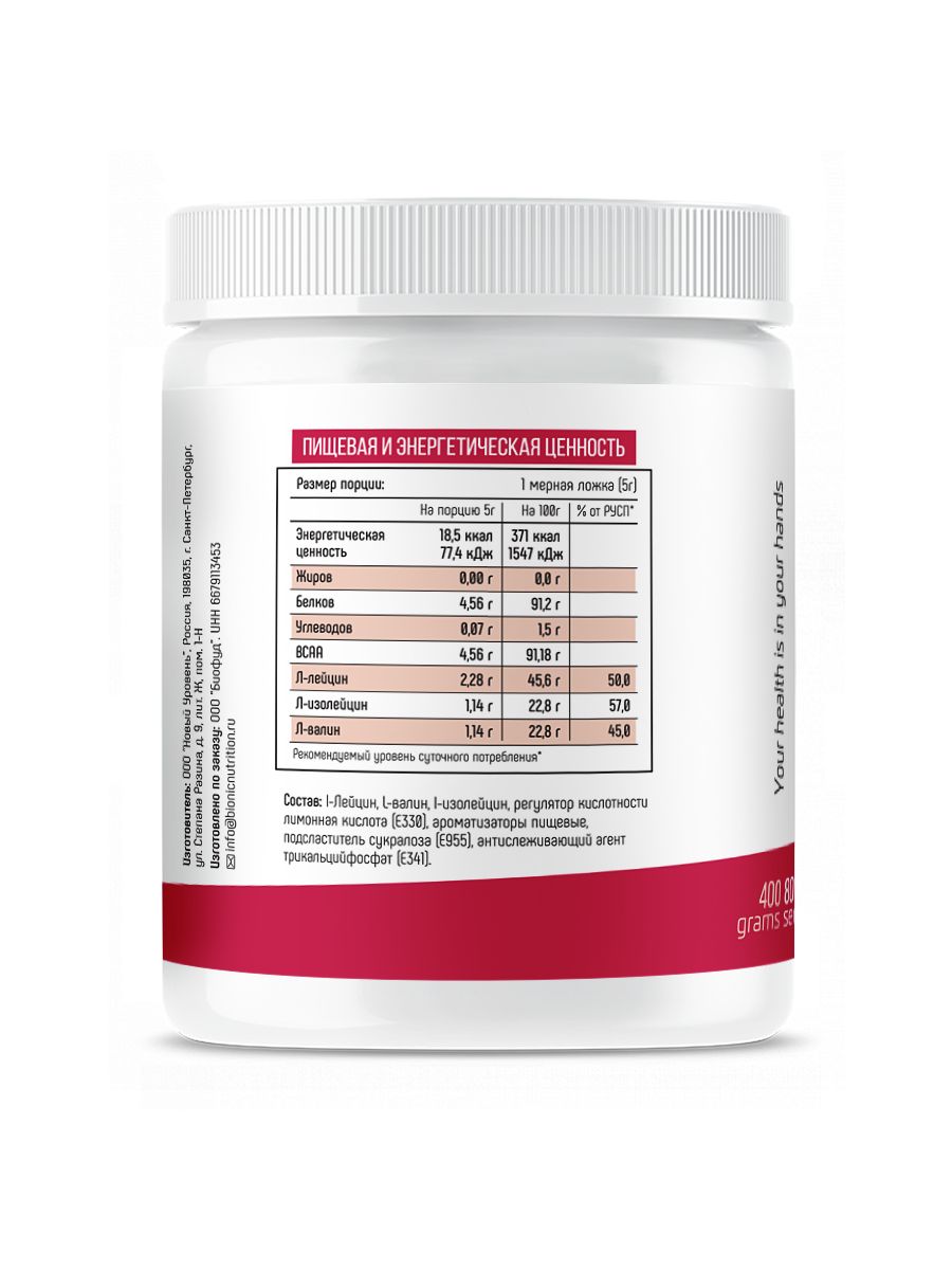 BCAA включает в свой состав три незаменимые аминокислоты: лейцин, валин и изолейцин. Эти аминокислоты составляют приблизительно 35% всех аминокислот, входящих в состав мышц, и 40% в структуре незаменимых. Около 25% энергии во время физических нагрузок выделяется из BCAA. Поскольку наш организм не способен синтезировать БЦАА самостоятельно, необходим прием БЦА в виде БАД.