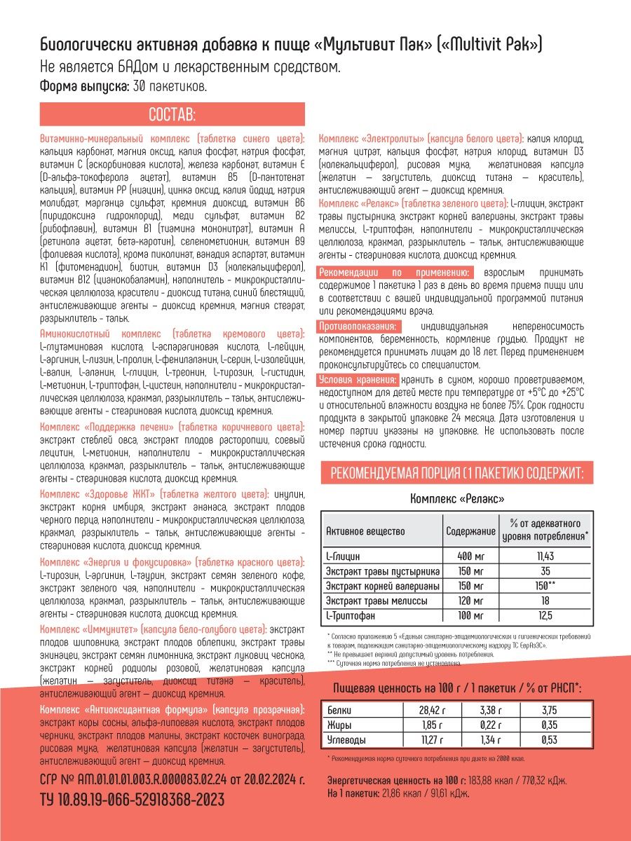 BIO PAK от Bionic Nutrition - сбалансированная витаминно-минеральная добавка, восполняющая дневную потребность организма в макро- и микронутриентах.