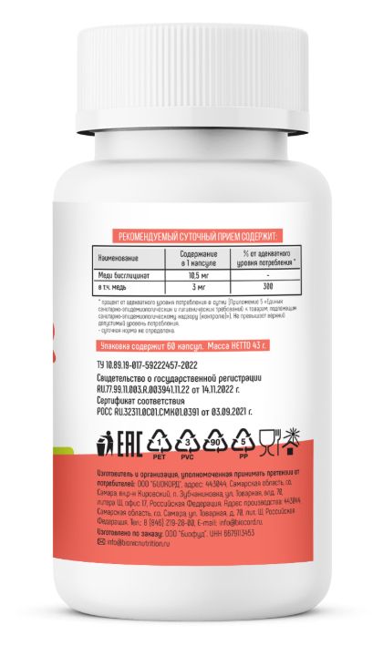Bionic Nutrition Copper Bisglycinate, 60 капс.