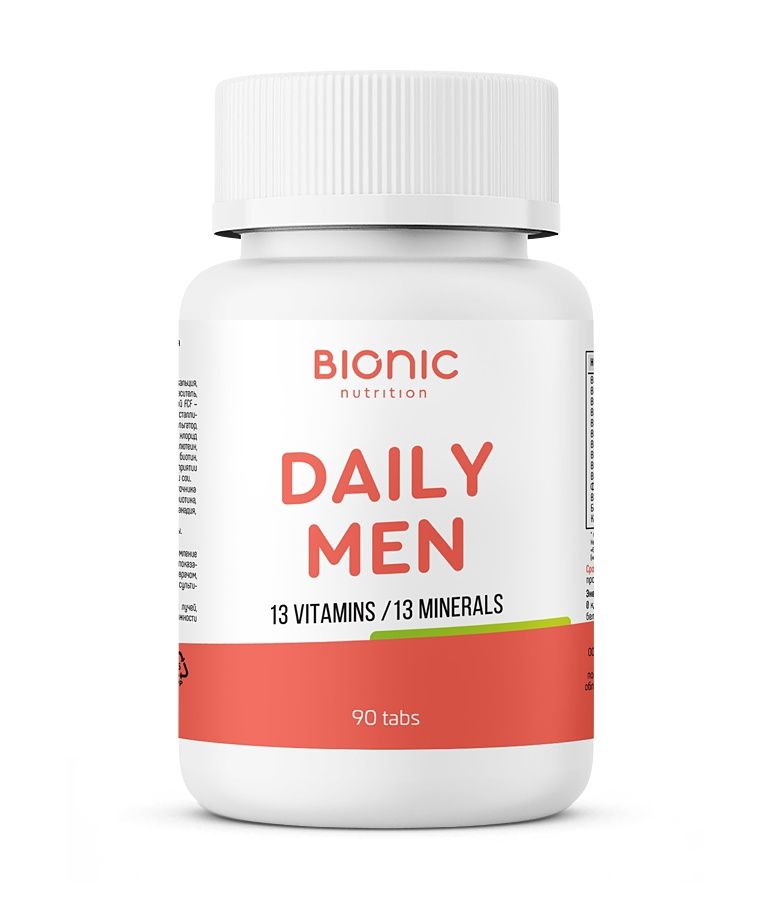 Bionic Nutrition Daily Men - полноценный витамино-минеральный комплекс, разработанный для мужчин. Daily Man отличается уникальным сбалансированным составом компонентов и доступностью в цене. Одна капсула содержит весь набор необходимых минералов и витаминов.