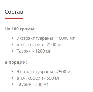 Bionic Guarana состоит из нескольких компонентов, положительно влияющих на разные системы человека. Высокое содержание кофеина (на 6-7% больше, чем в кофе) не раздражает стенки желудка и не вызывает учащенного сердцебиение. Именно он помогает сконцентрироваться на нужном действии и нормализовать функциональность головного мозга.