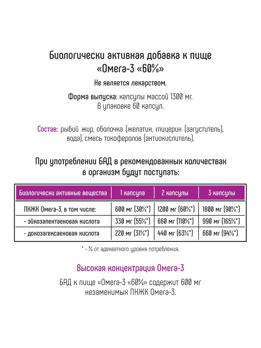 Омега 3 60% – комплекс, совмещающий: жирные кислоты с концентрацией 60%. Каждый компонент оказывает положительное влияние на клетки мозга, органы и ткани человека, улучшая состояние организма при каждом применении.