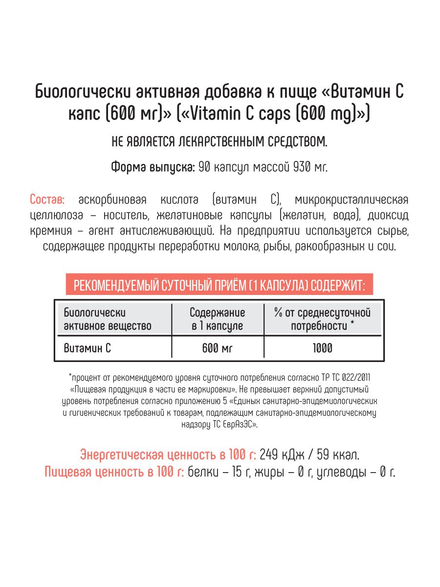 Bionic Nutrition Vitamin C 600 mg., 90 капс.