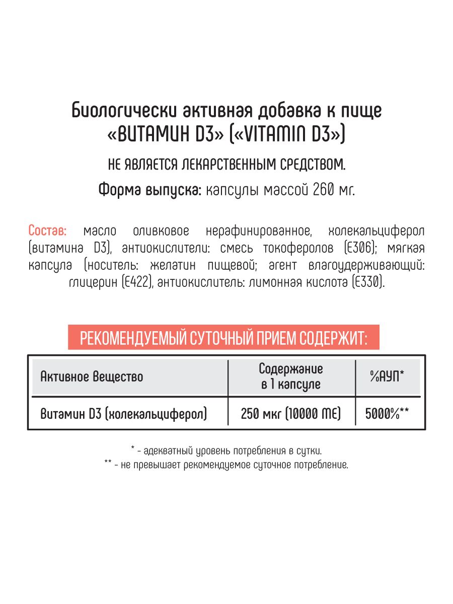 Витамин D3 - один из жизненно необходимых витаминов для человеческого организма. Его важность обусловлена тем, что от содержания витамина D3 напрямую зависит здоровье и крепость костей, а также эффективность нервно-мышечной функции.