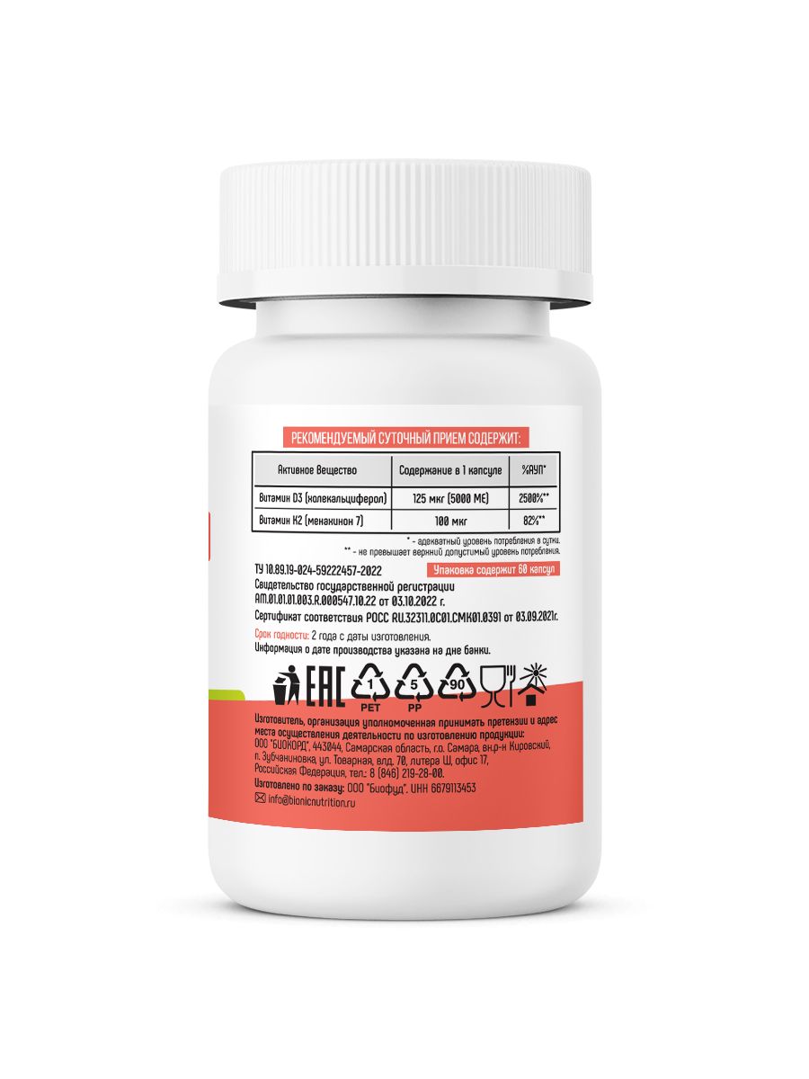 Bionic Nutrition Vitamin D3 5000 +K2 100, 60 капс.