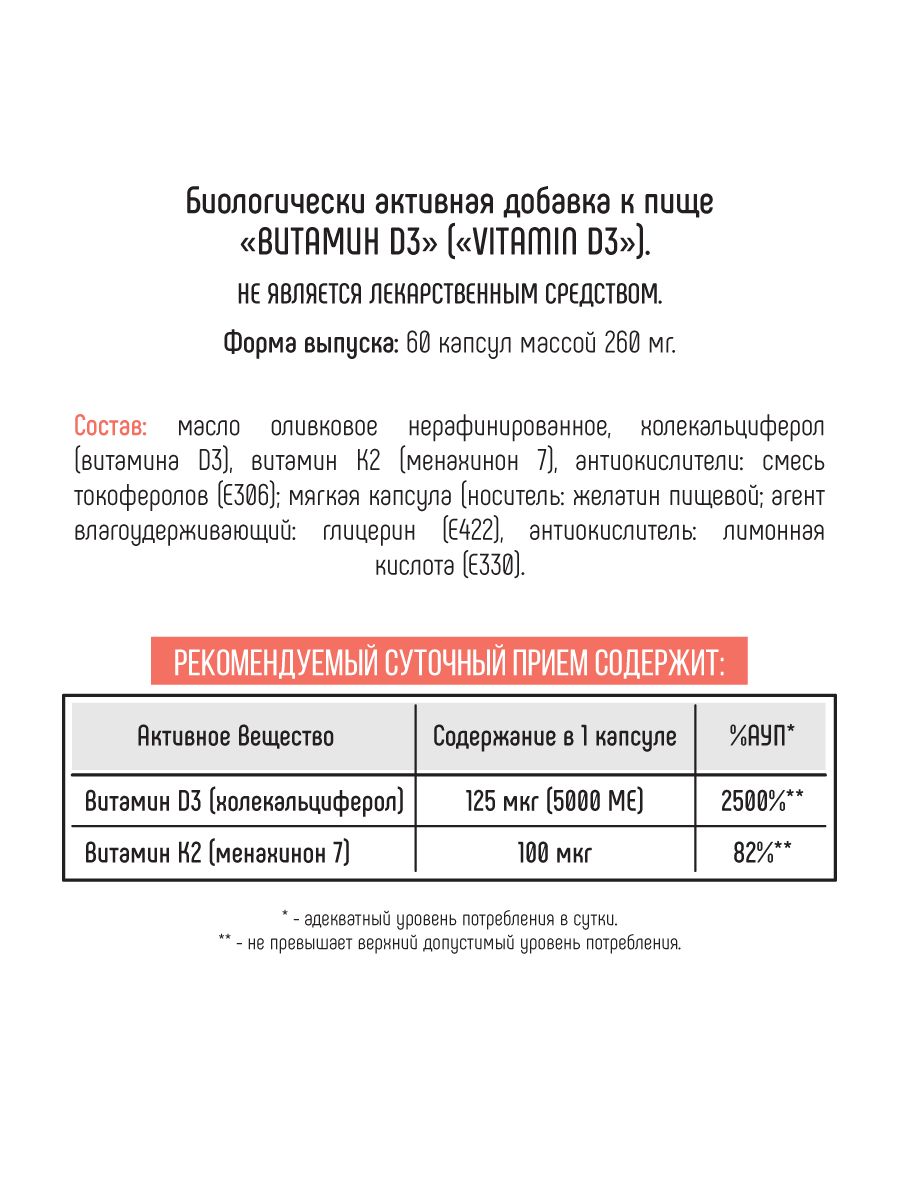5000 IU витамина D3 и 100 мкг витамина К2 в одной дозировке