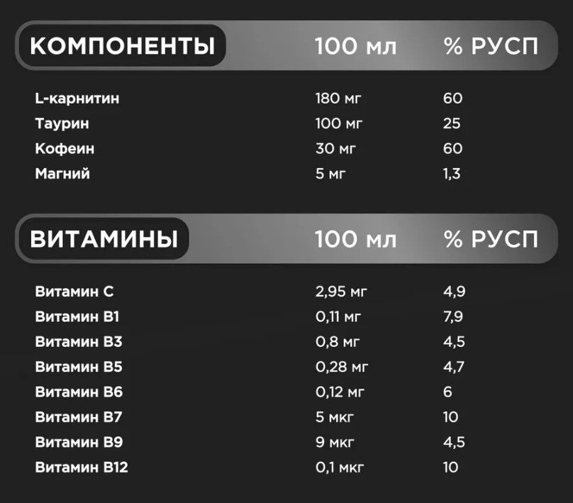 Энергетический напиток с L-Карнитином и Таурином, который зарядит тебя на свершения.