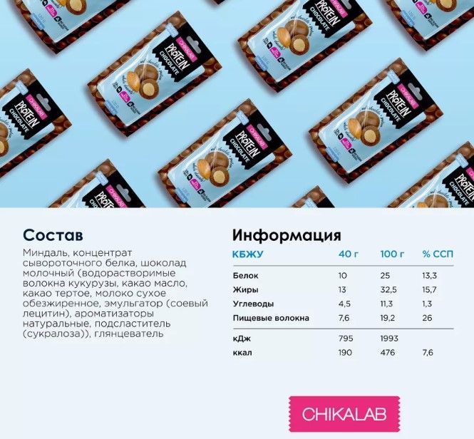 Цельный фундук, покрытый слоем протеина и обернутый в нежный молочный шоколад. Почему его назвали именно "полезным" перекусом? Используемый шоколад - собственная разработка технологов Chikalab совместно с итальянскими шоколатье. Эта глазурь не содержит сахара, сделана на основе высококачественной кукурузной клетчатки и настоящего какао-масла.