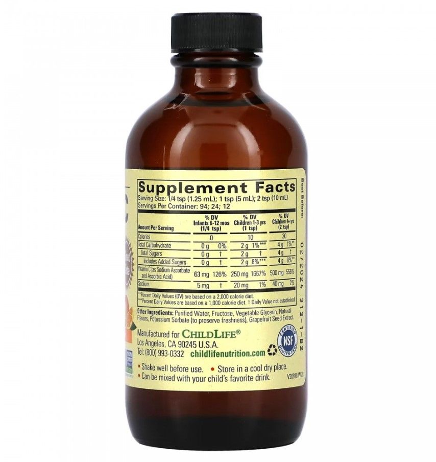 ChildLife Liquid Vitamin C — это высококачественная жидкая добавка витамина C, специально разработанная для детей. Витамин C играет ключевую роль в поддержании иммунной системы, способствует защите от простуд и инфекций, а также поддерживает здоровье кожи, десен и зубов. Эта формула легко усваивается, имеет приятный вкус и подходит для детей всех возрастов, что делает её идеальным дополнением к ежедневному рациону.