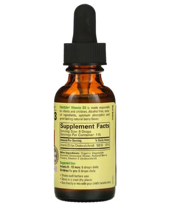 Витамин D3 от ChildLife разработан специально для младенцев и детей. Не содержит спирта, из натуральных ингредиентов, хорошо усваивается и имеет превосходный вкус натуральных ягод.