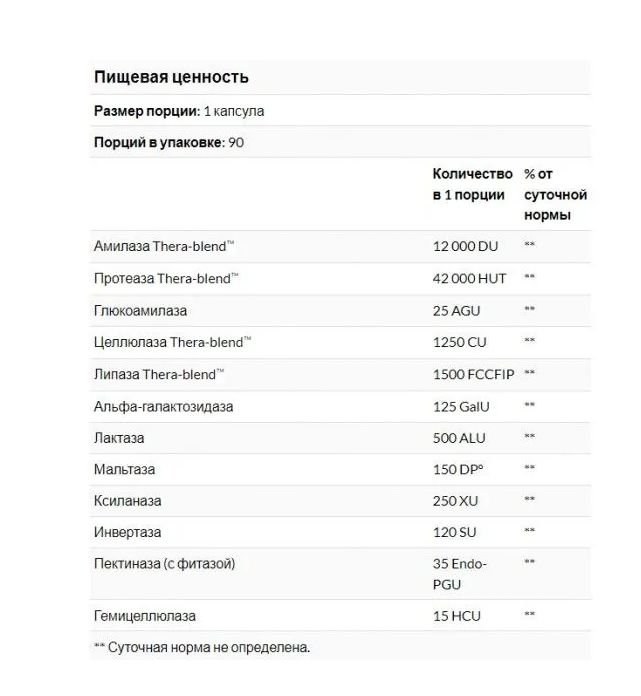 Thera-blend — это эксклюзивная смесь, содержащей штаммы ферментов, активизирующихся при разных уровнях pH. Доказано, что ферменты Thera-blend действуют в три раза сильнее и в шесть раз быстрее, чем другие популярные добавки для пищеварения.
