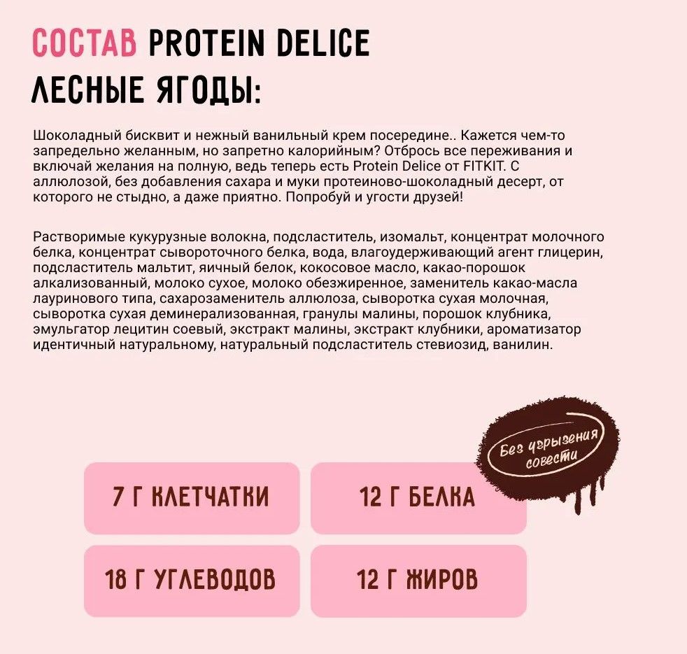 Протеиновое печенье Fit Kit - это печенье + суфле и все это покрыто протеиновой глазурью, без добавления сахара.