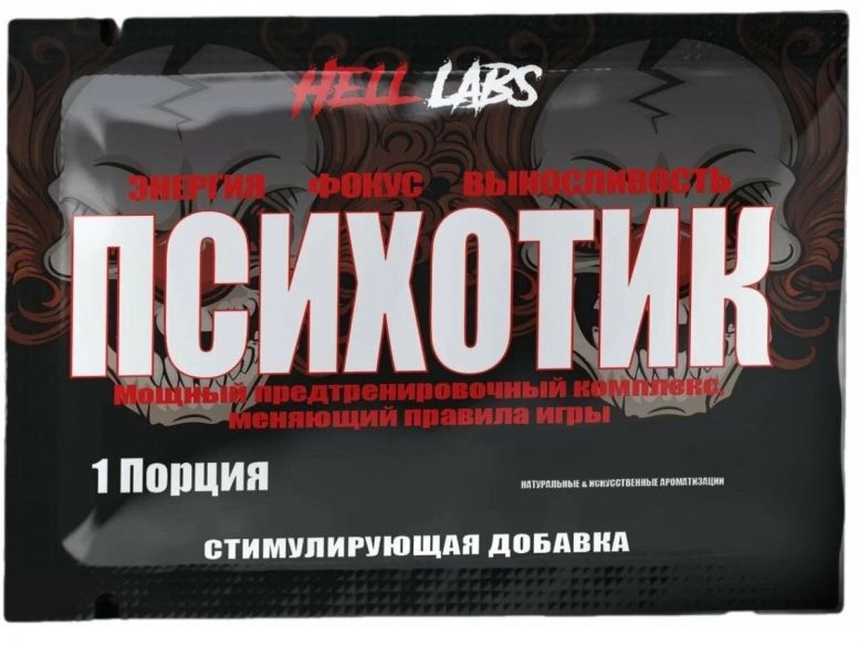 Команда технологов Hell_Labs создала полный аналог Insane Psychotic. На выходе получился продукт с эффектом "1 в 1", кроме того, теперь данный предтренировочный комплекс станет более доступным. Предтренировочный комплекс Psychotic - даёт мощный выброс энергии, фокусировки и эйфории в течении 3 часов, забудьте про Мезаморф и Девкон, отныне предтрен Психотик Ваш любимый психо-предтрен, порвите свое сознание, ощутите ярость безумия workout в зале, рвите железо! Использовать только настоящим психам, фанатикам зала, почувствуй себя на курсе без курса :)