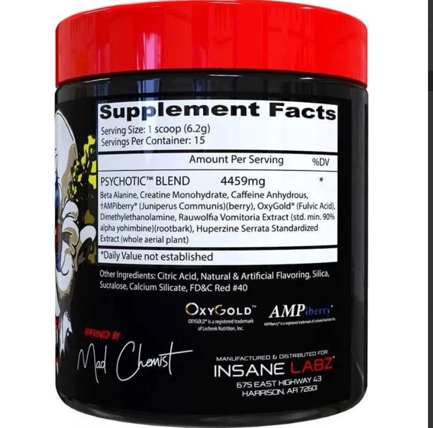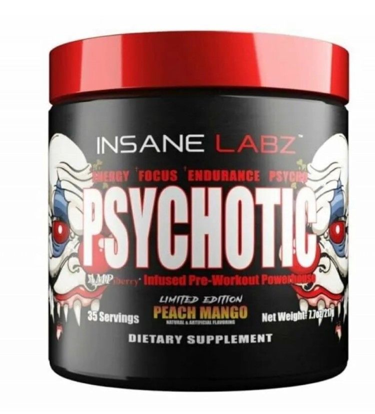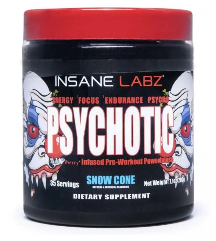 Insane Labz Psychotic обеспечивает длительное поступление энергии. Активизирует деятельность мозга и центральной нервной системы. Увеличивает выработку адреналина и норадреналина.