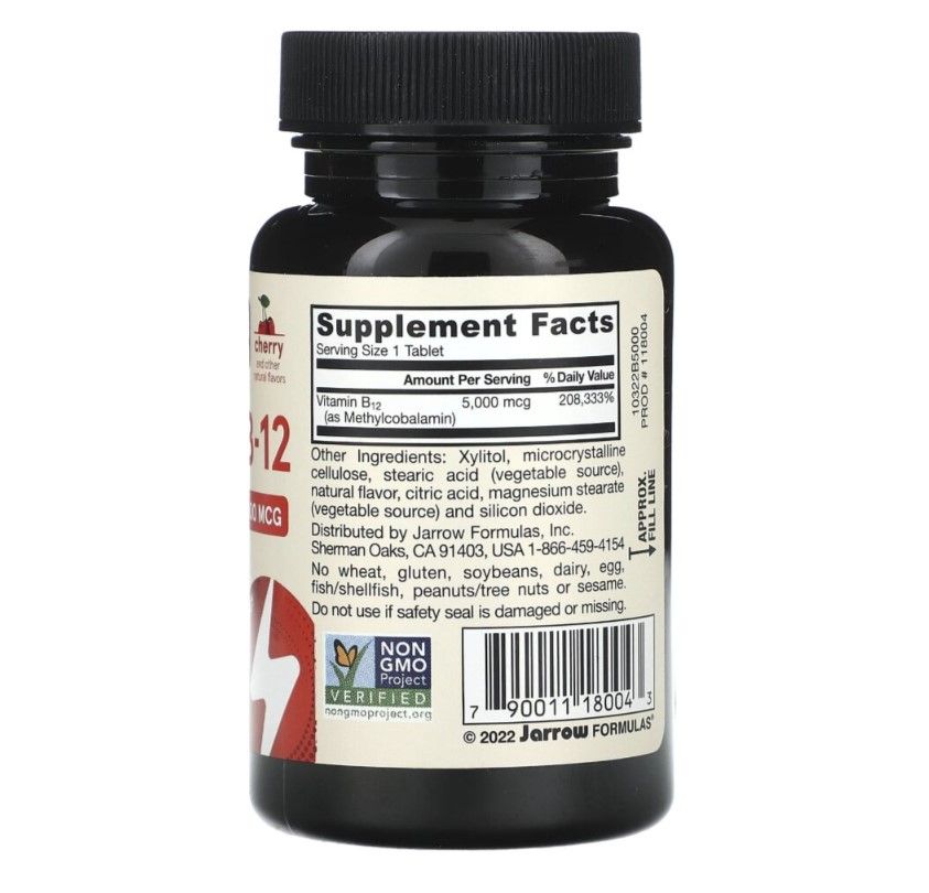 Jarrow Formulas Веганский Метилкобаламин 5000 мкг со кусом вишни - ваш надежный источник витамина B12 с максимальной силой действия. Обеспечьте свой организм необходимым уровнем этого важного витамина с этим качественным пищевым дополнением.