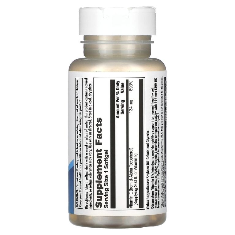 Витамин E предназначен для обеспечения питательной поддержки нормальных, здоровых клеточных мембран и тканей. Витамин E KAL обеспечивает антиоксидантную активность благодаря 134 мкг (200 МЕ) из натурального источника d-альфа токоферола в мягких таблетках, которые легко глотать.