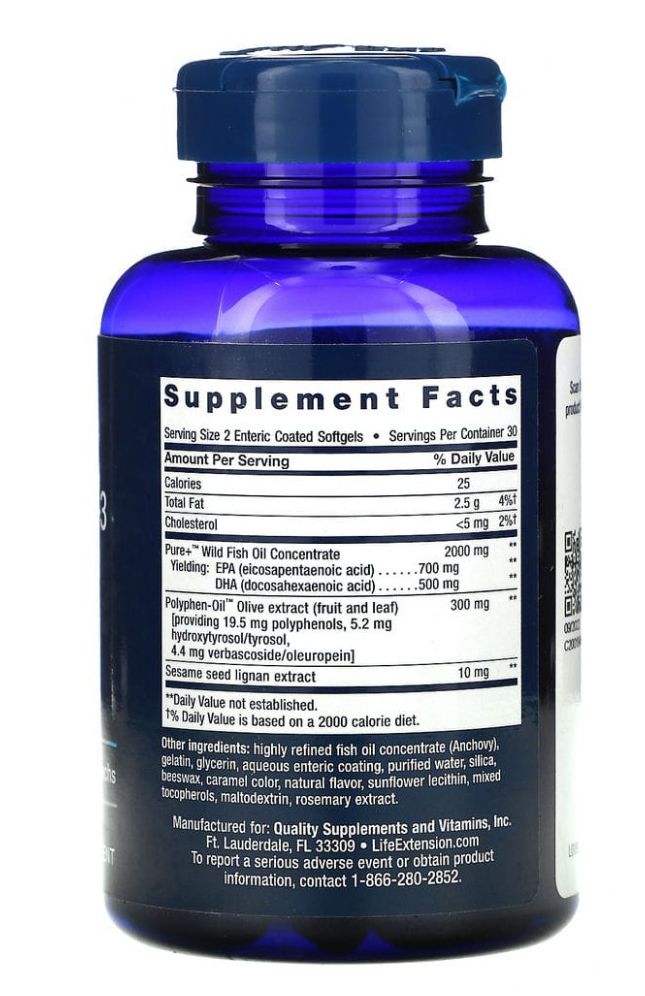 Жирные кислоты ЭПК и ДГК из рыбьего жира поддерживают здоровье сердечно-сосудистой системы, мозга и обладают многими другими полезными свойствами. Созданный с учетом преимуществ средиземноморской диеты продукт Super Omega-3 содержит жирные кислоты омега-3 ЭПК и ДГК, необходимые вашему организму, а также эффективные полифенолы оливы и лигнаны кунжута, обеспечивающие дополнительную пользу для сердечно-сосудистой системы, когнитивных функций и здоровья всего организма.