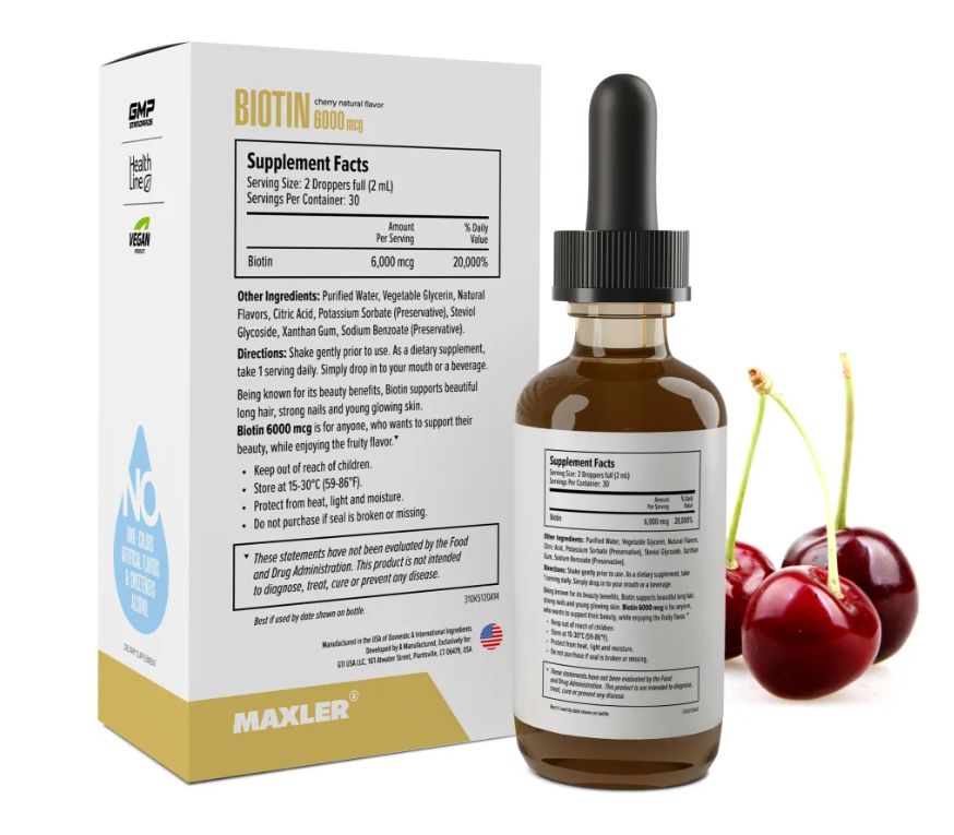 Биотин известен своими полезными свойствами для красивых длинных волос, крепких ногтей и молодой сияющей кожи. Биотин также необходим для нормального метаболизма углеводов, протеинов и жиров в организме.