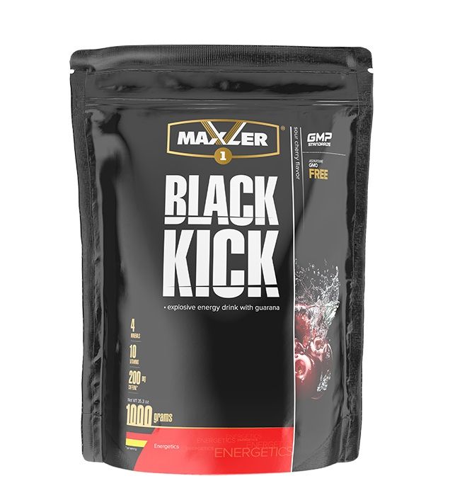Black Kick – энергетический кофеино-гуарановый продукт на углеводной основе с витаминами и минералами. Стимулирующий эффект Black Kick обеспечивается высоким содержанием кофеина и гуараны. Экстракт гуараны – источник кофеина растительного происхождения. Сочетание чистого кофеина (быстрое воздействие на организм) с экстрактом гуараны (замедленное воздействие) обеспечивает интенсивное и длительное действие продукта. Прием Black Kick перед тренировкой и во время физических упражнений ускоряет кровообращение, стимулирует работоспособность, выносливость, помогает бороться с усталостью, улучшает концентрацию и обеспечивает готовность к запредельным нагрузкам. Продукт рекомендован для игровых, силовых видов спорта, занятий фитнесом, а также для людей, ведущих активный образ жизни.
