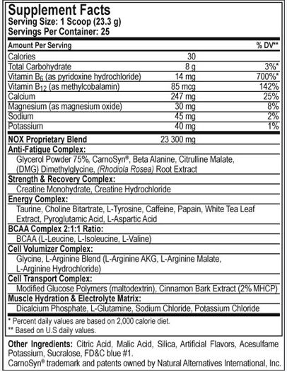 Для получения одной порции смешать 30 г порошка (1 мерную ложку) с 300 мл воды. Принимать за 30 минут до тренировки.