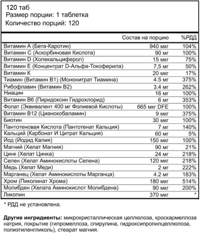 Daily Max обеспечивает 100% рекомендуемой суточной нормы 12 важнейших витаминов и минералов.