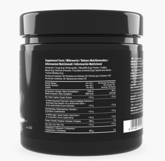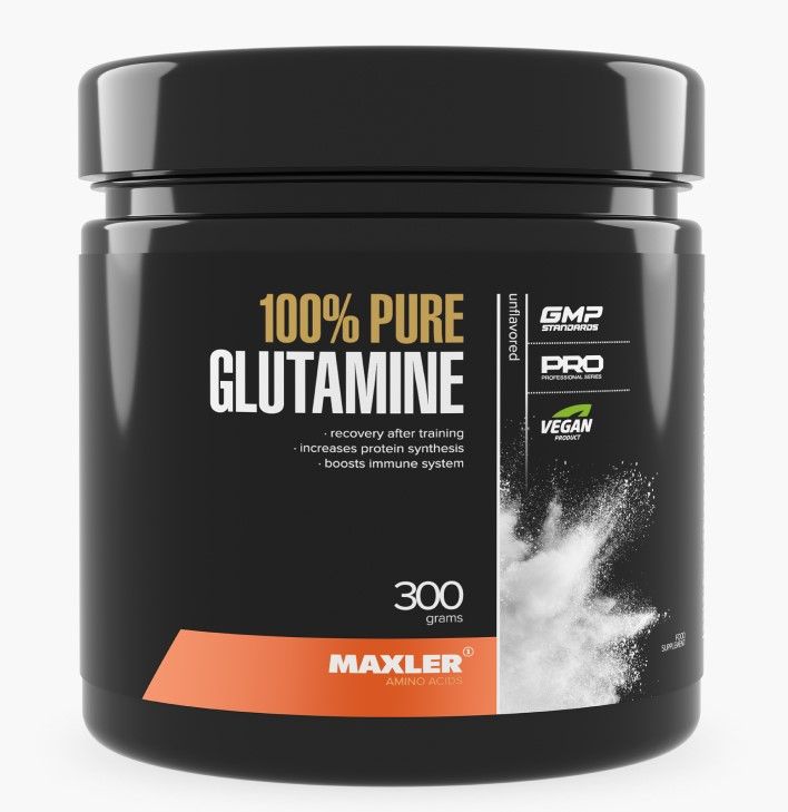 Glutamine – условно незаменимая аминокислота L-Глутамин, входящая в состав белка, способна ускорять метаболические процессы в мышцах и замедлять катаболические процессы после тяжелых тренировок. L-Глутамин является самой распространенной аминокислотой организма (мышцы состоят из нее на 60%). При достаточном количестве L-Глутамина в организме повышается синтез гормонов, образуется ряд витаминов, нейромедиаторов и других веществ, участвующих в основных биохимических процессах. L-Глутамин также стимулирует память и внимание, обладает антистрессовым действием.
