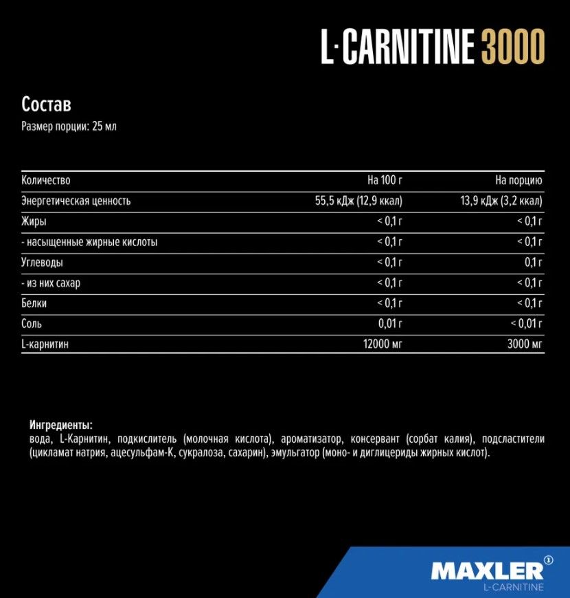Производитель позаботился не только об удобной форме, но и о максимальной концентрации активного л-карнитина в порции. Новинка, которая подойдет и несомненно понравится всем, кто уже пробовал предыдущую серию Maxler l-carnitine 3000. Кроме всего прочего обладает отличным вкусом.