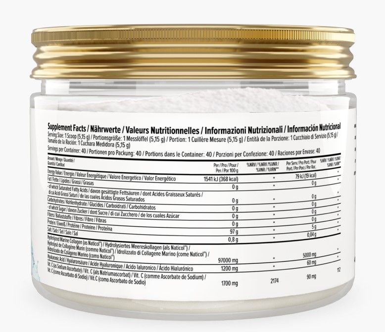 Продукт обогащен витамином С, который также включен в процесс синтеза собственного коллагена.