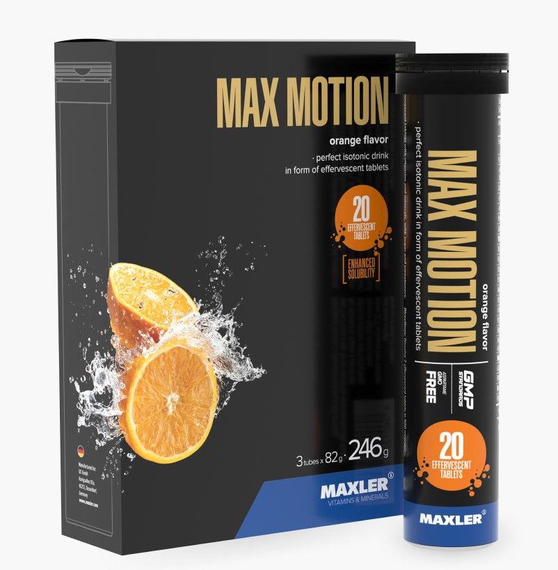 В условиях интенсивных тренировок организм с потом теряет не только жидкость, но и необходимые для его работы минералы и микроэлементы. Для своевременного восполнения их потерь можно использовать комплекс для приготовления изотонического напитка Max Motion от Maxler. В его составе есть важные для функционирования каждого органа витамины и минералы, а также простые углеводы, которые служат быстрым источником энергии.