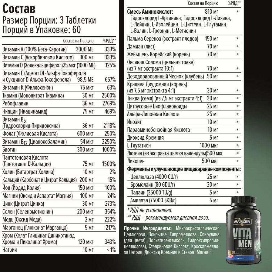 Vita Men Вита Мен, 180 таб Maxler - это комплекс, который создан специально для мужчин и включает комплекс ключевых минералов и экзотических фито-добавок VitaMen способствует улучшению умственной и физической активности, здоровью простаты, снижает негативные последствия стресса и нормализует функцию пищеварительной системы.