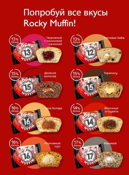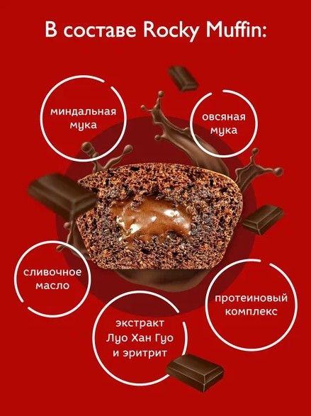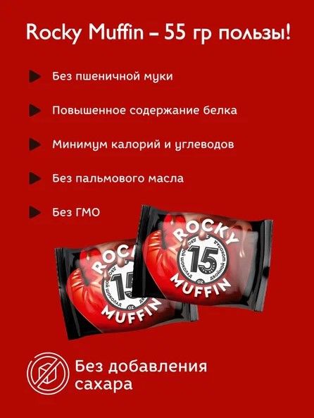 Кекс “Muffin ROCKY” со вкусом двойной шоколад - это совершенно новый тип протеинового десерта, полезный для здоровья, безопасный для фигуры и по-настоящему вкусный!