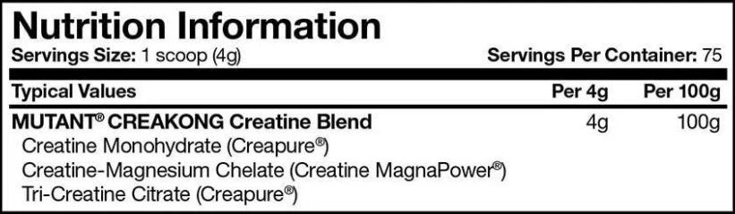 Креатиновый комплекс Creakong от канадского бренда Mutant представляет собой чистую смесь наиболее популярных запатентованных и клинически изученных видов креатина – креатин моногидрат Creapure, креатин Magnapower (магний креатин хелат) и трикреатин цитрат. За счет качественной энергетической подпитки мышечных тканей продукт эффективно поможет нарастить мышечную массу, увеличить силу и повысить выносливость.