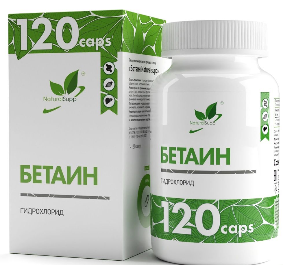 Natural Supp Betaine HCL 600 мг., 120 капс.