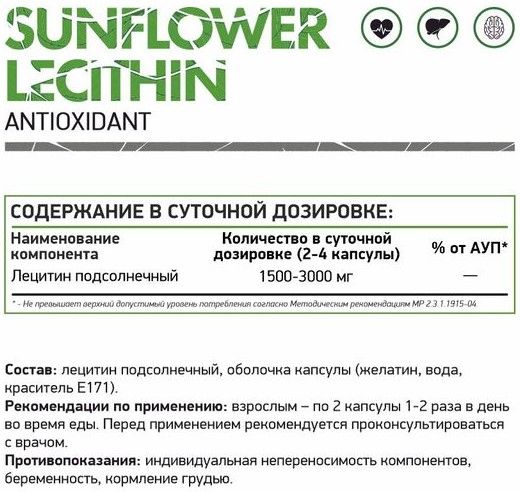 Подсолнечный Лецитин - комплекс фосфолипидов, которые являются структурным компонентом клеточных мембран. Это вещество - одно из важнейших компонентов клеток печени-гепатоцитов. Он способствует восстановлению поврежденных клеток печени.( может использоваться при жировом гепатозе, у людей с алкогольным поражением печени, при лекарственных и пищевых отравлениях).