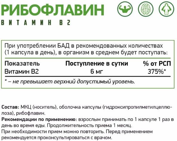 Рибофлавин (витамин B2) — водорастворимое органическое соединение. Он не способен накапливаться в живых тканях организма человека и за короткий промежуток времени выводится из организма естественным путем через почки.