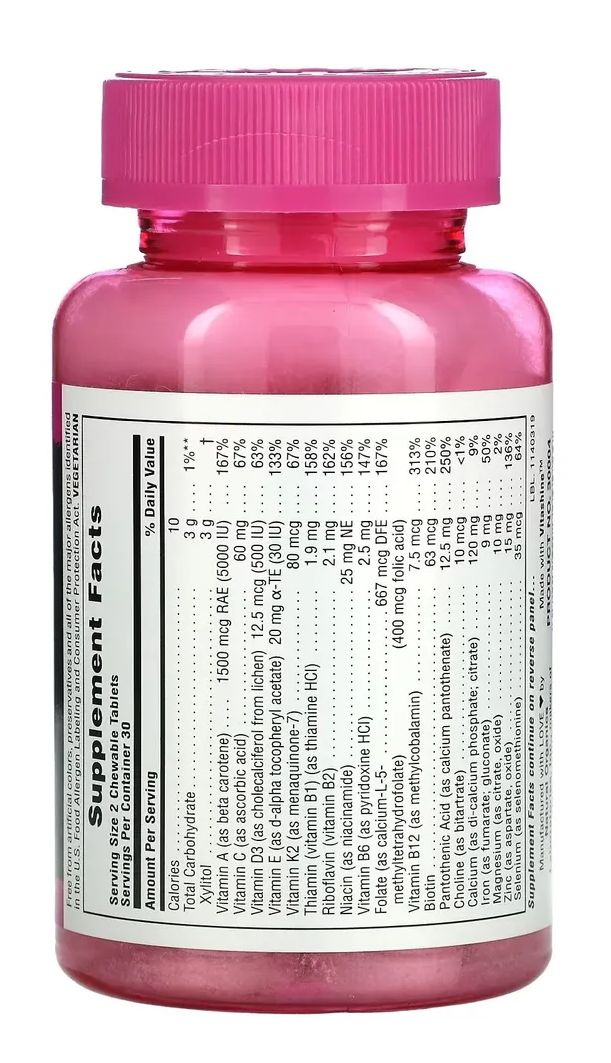 Витамины для подростков, для девочек, без сахара, натуральный вкус лесных ягод, 60 жевательных таблеток.