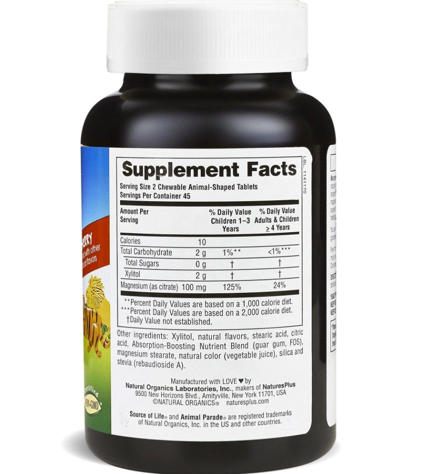 "Парад зверей" MagKidz содержит полноценный, натуральный, незаменимый магний в высокобиодоступной форме.