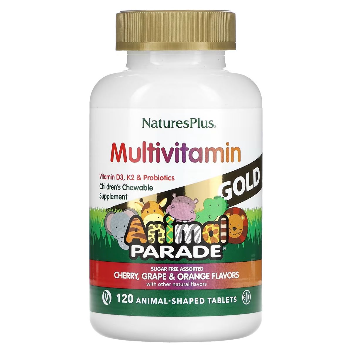Детские мультивитамины и минералы Animal Parade Children's Chewable Multi-Vitamin & Mineral компании Natures Plus выпускаются в виде таблеток, которые по форме напоминают различных зверюшек. Они мягкие на ощупь и легко разжевываются.