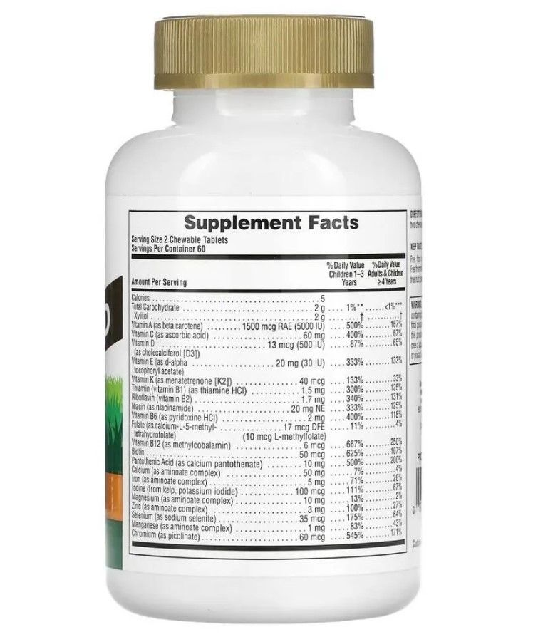 Добавка содержит 16 витаминов и 8 минералов, а также самые полезные для здоровья продукты, включая спирулину, морковь, брокколи и шпинат. Витамин D3 поддерживает иммунную систему и укрепляет кости и суставы. Витамины группы В помогут нервной системе справится с любыми нагрузками. Также в препарат включены питательные вещества растительного происхождения, которые придадут энергии и бодрости Вашему ребенку, а также защитят от вирусов.