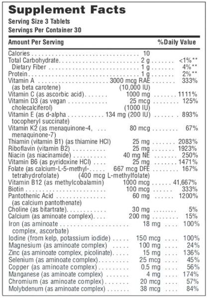 NaturesPlus Source of Life Prenatal Multi — это комплексная натуральная добавка для всех этапов беременности. Каждая порция содержит полную дозу всех ключевых витаминов и минералов, включая фолиевую кислоту, метил B12 и железо, усиленные синергетической растительной смесью цельных продуктов. Эта уникальная формула содержит витамины и минералы, подходящие для репродуктивной функции, фертильности, беременности и грудного вскармливания. Прием фолиевой кислоты повышает уровень фолата у матери. Фолат способствует росту материнских тканей во время беременности, способствует нормальному синтезу аминокислот и нормальному кроветворению; он способствует нормальной психологической функции, нормальной функции иммунной системы, уменьшению усталости и усталости, а также играет роль в делении клеток. Низкий статус фолата у матери является фактором риска развития дефектов нервной трубки у развивающегося плода.