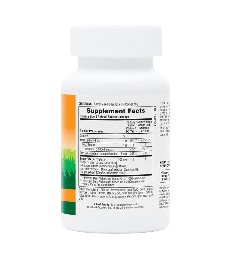 Пастилки Animal Parade Kid Zinc от Nature’s Plus — таблетки для поддержания высокого иммунитета у детей в виде забавных зверушек с ярким вкусом спелого мандарина.