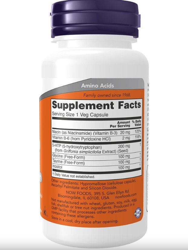 5-HTP 200мг. от NOW – это источник гидрокситриптофана, причем получен он из экстракта гриффонии, поэтому является натуральным компонентом. С каждой порцией вы снабдите себя 200 мг гидрокситриптофана. Его основная польза состоит в том, что он повышает уровень вырабатываемого в организме серотонина. Данный гормон важен для многих аспектов в работе нервной системы. Он отвечает за наше общее хорошее самочувствие, ощущение удовлетворенности, а также регулирует ритм сна и бодрствования. При низком уровне серотонина в теле вероятность ожирения, мигреней, депрессивных настроений, постоянной усталости, бессонницы и навязчивых состояний резко увеличивается. Поэтому контролировать его уровень в теле очень важно, потребляя его извне.