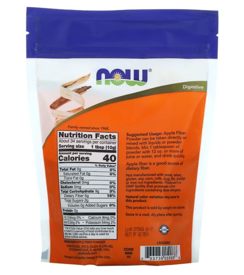 NOW Apple Fiber – это отличный выбор для тех, кто стремится улучшить свое пищеварение и общее состояние здоровья с помощью натуральной добавки на основе яблочной клетчатки.