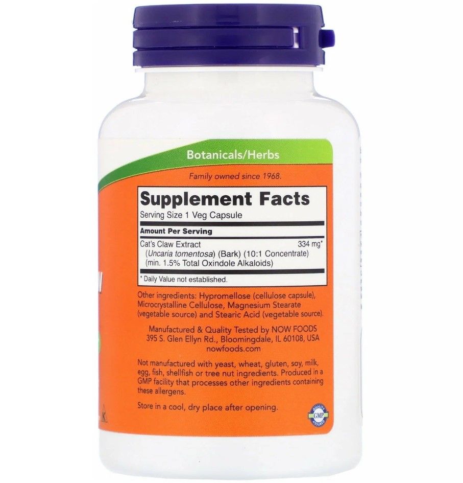 (Нау экстракт кошачьего когтя)NOW Cat's Claw – это высококачественная пищевая добавка, содержащая 500 мг экстракта коры кошачьего когтя (Uncaria tomentosa) в каждой капсуле. Кошачий коготь, также известный как ункария, – это растение, произрастающее в амазонских тропических лесах и используемое в традиционной медицине для поддержания иммунной системы и общего здоровья.