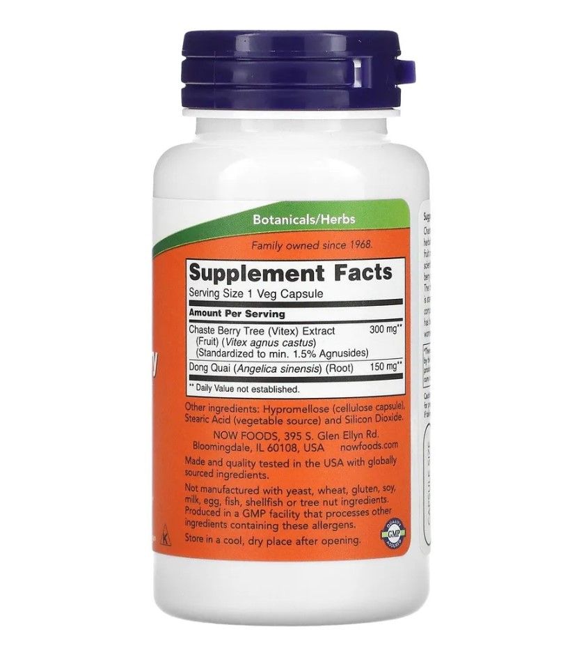 NOW Chaste Berry Vitex Extract 300 mg — это эффективное средство для поддержания женского гормонального баланса, облегчения симптомов ПМС и климакса, а также улучшения общего состояния здоровья.