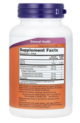 Now Coenzyme Q10 with Omega-3, 60 мг., 60 капс.